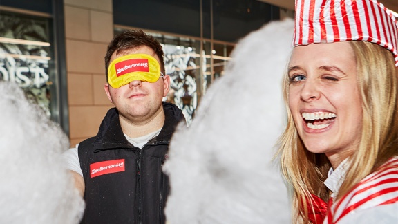 Eine Zuckerwatte ohne Zucker? Ja, die gibt’s wirklich nur bei uns! Aber die Probanden wollen bei so wenig Zucker natürlich trotzdem probieren. Um die Geschmack-Sensor ...