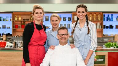 Zwei Kandidatinnen präsentieren am Freitag ihre Finalgerichte, die anschließend von Juror Thomas Martin bewertet werden.