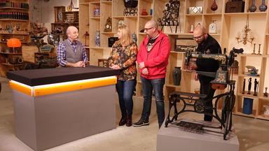 Die Objekte vom 27. März 2020: Anhänger mit Kette, Sattlernähmaschine, zwei Jugendstilvasen, Collier, Bronzefigur und Schirmständer aus Kunststoff