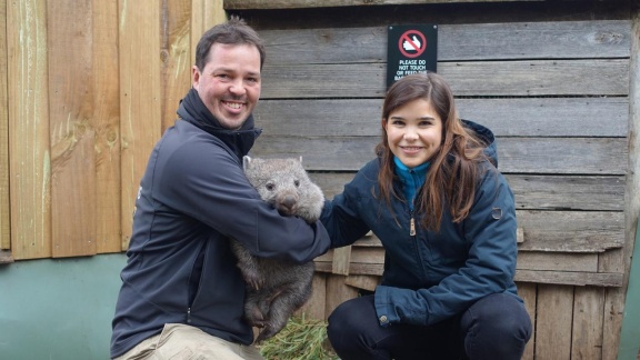 Zwei knuddelige Wonneproppen lernt Anna im Tierpark Bonorong in Tasmanien kennen: Die beiden Wombat-Mädchen Willow und Judy. Willow ist erst ein Jahr alt und liebt es, gekn ...